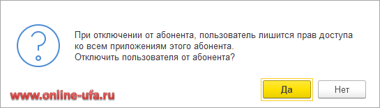В ходе реальной эксплуатации облачного сервиса, естественно, может возникнуть и обратная ситуация, когда нужно удалить старого пользователя или временно заблокировать ему доступ к информационным базам.