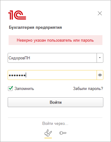 Заблокированное приложение у данного пользователя перестанет отображаться на странице "Мои приложения" и в "Личном кабинете", а при попытке войти с помощью "Тонкого клиента 1С" будет выдана такая же ошибка аутентификации, как и при полном отключении пользователя от абонента (см.Способ 1): "Неверно указан пользователь или пароль".