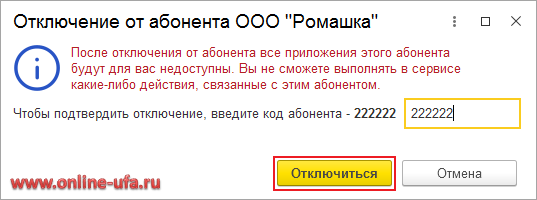 Во избежания случайного нажатия введите предлагаемый код подтверждения и нажмите кнопку "Отключиться".