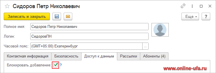 Вариант с блокировкой доступа к базам, без отключения пользователя от абонента, рекомендуется использовать только в случаях, когда предполагается, что через некоторое время данному пользователю потребуется доступ разблокировать. Например, при увольнении бухгалтера, ему может потребоваться на некоторое время предоставить временный доступ для завершения каких-то процессов. После завершения всех дел (или если предоставление временного доступа не предполагается) старого пользователя лучше отключить от абонента полностью, как это описано выше в Способе 1, а не блокировать доступ к базам.