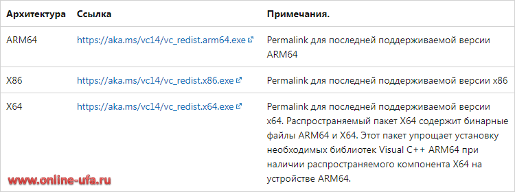 Если на компьютере планируется использовать как 32, так и 64-разрядные версии платформы 1С:Предприятие 8.*, то скачайте и установите оба варианта Microsoft Visual C++ Redistributable.